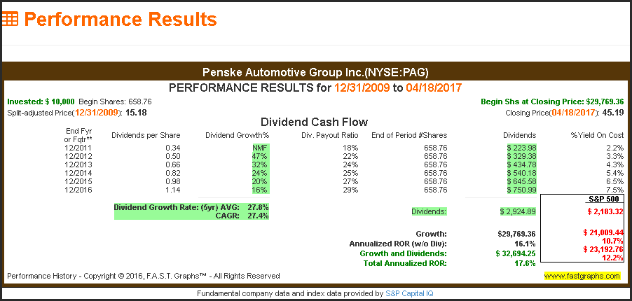 As the title of this article indicates, I believe that Penske Automotive Group is a very attractive mid-cap dividend growth stock hiding in plain sight. Perhaps it’s because the company is small, but I found it odd the company is so lightly followed – especially considering its excellent fundamental attributes. Nevertheless, the more I look at it, the better I like Penske Automotive Group. For me, it offers most everything I am currently looking for: Low valuation, above-average current yield and well-defined prospects for continued growth.
