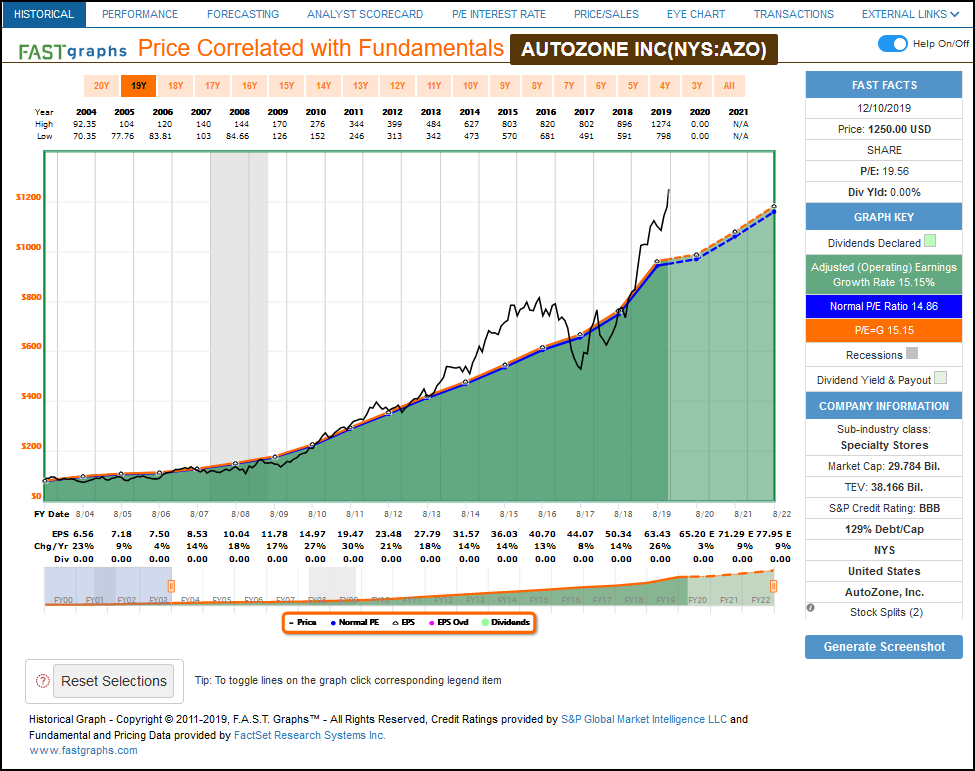O’Reilly Automotive Inc (ORLY): High Correlation with Price Equal to Earnings Growth
