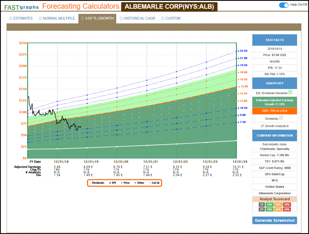 The FAST Graphs Estimated Earnings and Return Calculators allow me to easily make these calculations and, with its override function, run various “what-if” scenarios. Therefore, I can calculate best case, worst case and my most reasonable case scenarios. In my opinion, the discipline of calculating various future values of a dollar’s worth of earnings that I intend on buying today, over a reasonable range of possibilities is the best way I have found of demystifying the concept of estimating fair current value. Admittedly, this may not be an exact science, but it’s a whole lot better than just pure guessing.