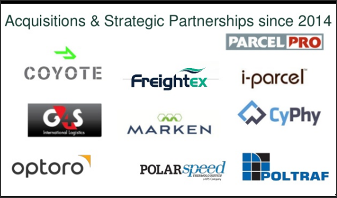 One of their more noteworthy acquisitions has been Coyote Logistics in 2015. Here is how Alan Gershenhorn, UPS Chief Commercial Officer described the opportunity from the acquisition: