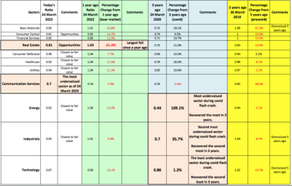 Based on Morningstar’s Fair Value measure as of 24 March 2023, the sector that is most undervalued currently, is Communication Services. Another area where value investors can find opportunities will be in the Real Estate sector since that sector declined the most in the past year.
