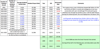 As IPG is our candidate for total return (price appreciation and dividends), we are examining IPG from 2012 since that was the first year IPG started growing its dividends.