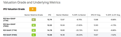 IPG is currently trading at a PE of 12.74, below its 5-year average of 13.98 and below the sector median of 13.97.