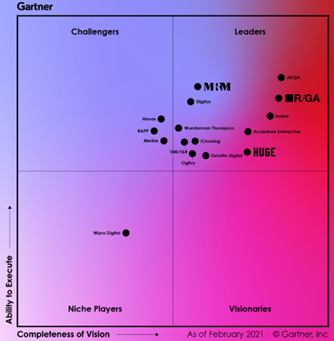 Interpublic Group owns some of the best brands in the world, such as R/GA, Huge and MRM, and many of these were recognize by Gartner as Leaders among the Global Marketing Agencies.
